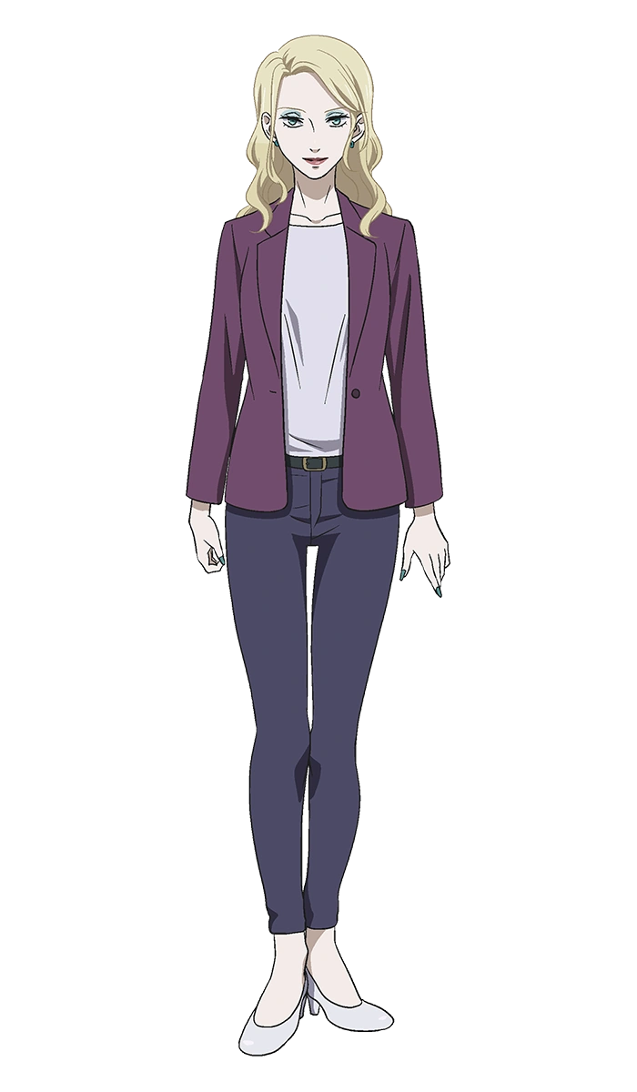 Jill is described as a very beautiful woman. She has a slim, voluptuously tall figure, standing at 174 cm. From her American heritage, Jill has blonde, wavy, shoulder-length hair, which she wears either loose or in a ponytail. When worn down, her hair is middle parted with bangs framing her face. She has green eyes and is frequently seen wearing makeup, which she is expertly skilled in using to hide the dark circles under her eyes, as she is a non-blood-drinking devil. In the past, when she first met Takashi Sawazaki, she sported short, ear-length hair with bangs covering her forehead.
